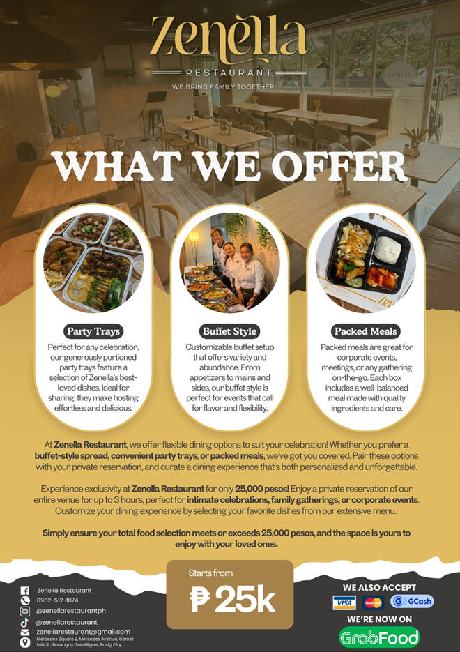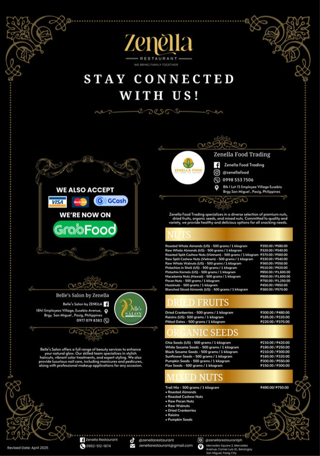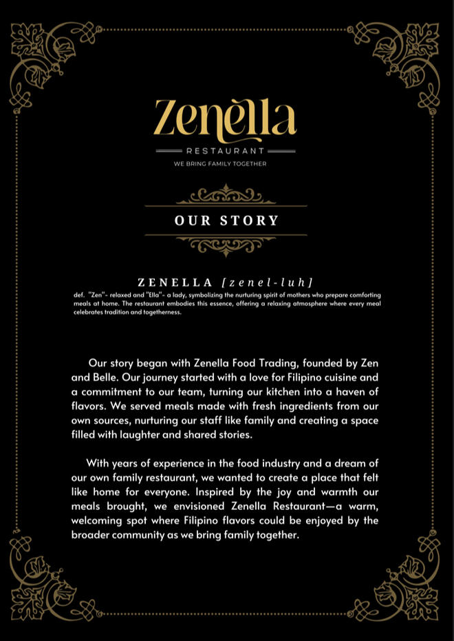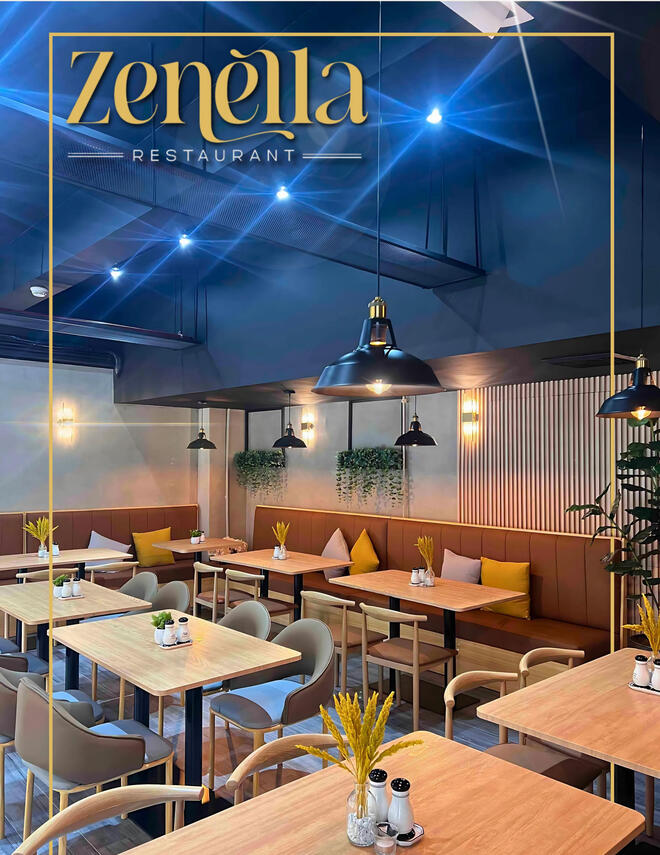 Z E N E L L A [z e n e l - l u h]def. "Zen"- relaxed and "Ella" - a lady, symbolizing the nurturing spirit of mothers who prepare comforting meals at home. The restaurant embodies this essence, offering a relaxing atmosphere where every meal celebrates tradition and togetherness.
